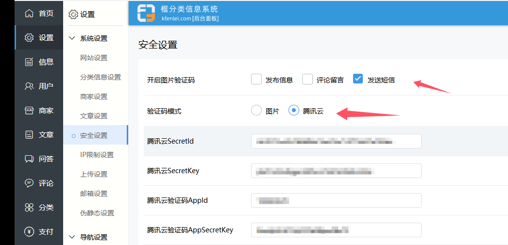 使用自己申請的短信接口的站長,可以在網(wǎng)站設置 - 安全設置中開啟。使用的是騰訊云驗證碼接口,站長需要自己在騰訊云開通。