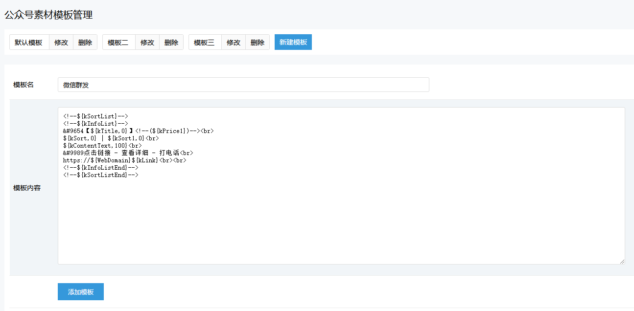 模板名寫微信群發(fā),模板內(nèi)容復(fù)制下面的代碼