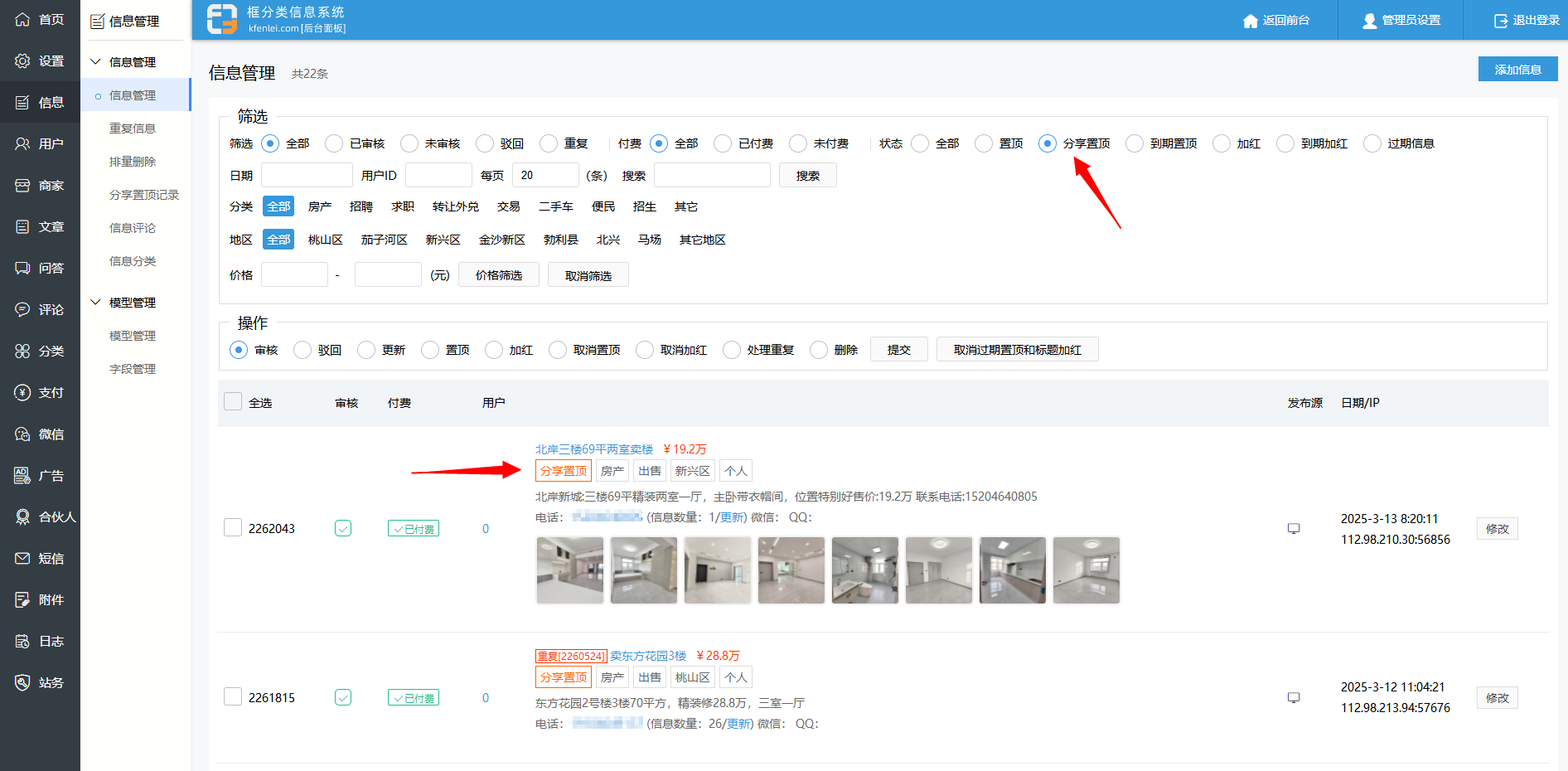 如何讓你的地方分類信息網站快速得到推廣。框分類功能之“分享朋友圈免費置頂”!