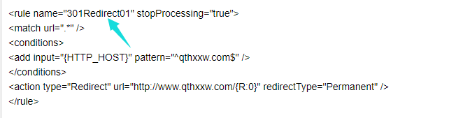 <add input="{HTTP_HOST}" pattern="^qthxxw.com$" />