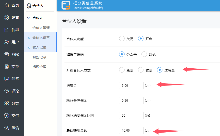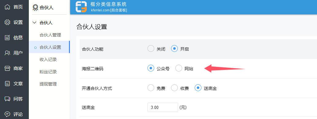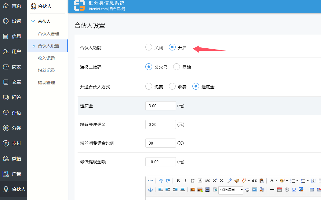 如圖,在后臺 - 合伙人 - 合伙人設(shè)置中,點開啟