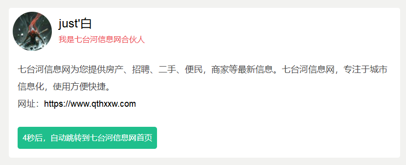 打開合伙人鏈接的樣式如圖,會顯示合伙人頭像、名稱、及鏈接文字和網(wǎng)站地址。