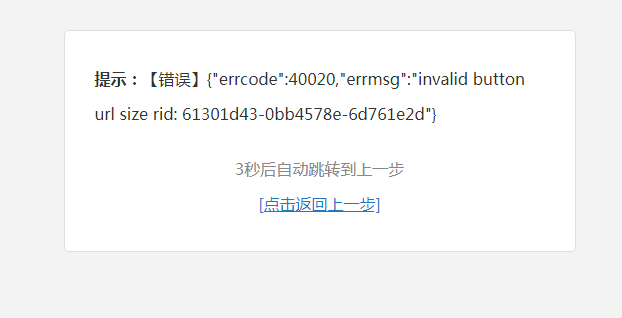 提示:【錯(cuò)誤】{"errcode":40020,"errmsg":"invalid button url size rid: 61301eb6-17d0dc6f-39264b3a"}