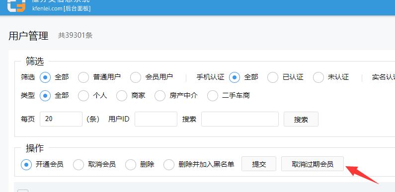 可以在后臺(tái)用戶管理或商家管理中,點(diǎn)一下【取消過(guò)期會(huì)員】按鈕