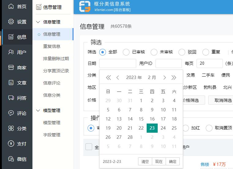 在后臺(tái)信息管理,選擇一下日期,就可以看到當(dāng)天的信息了