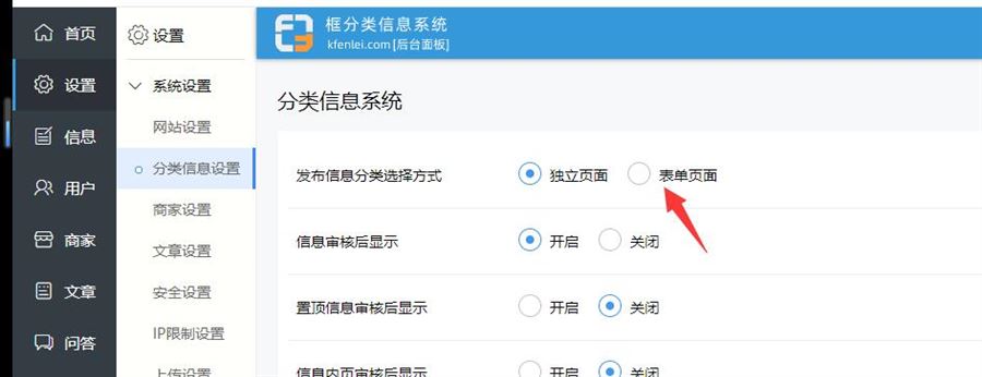 在后臺(tái) - 分類信息設(shè)置中,【發(fā)布信息分類選擇方式】改為表單