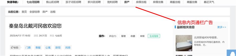 電腦端的信息內(nèi)頁(yè)和新聞內(nèi)頁(yè)的二級(jí)導(dǎo)航欄下的廣告如何設(shè)置