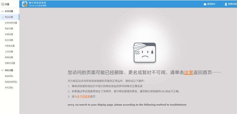 為什么后臺(tái)開(kāi)啟開(kāi)啟增強(qiáng)搜索顯示,您訪問(wèn)的頁(yè)面可能已經(jīng)刪除、更名或暫時(shí)不可用,請(qǐng)單擊這里返回首頁(yè)……