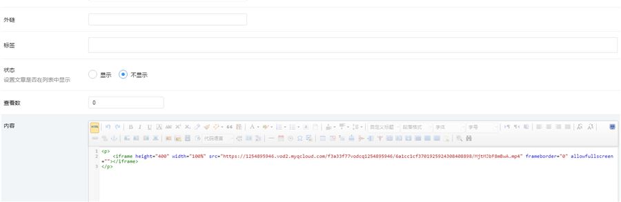文章中插入視頻代碼后,前端顯示亂碼不播放問題