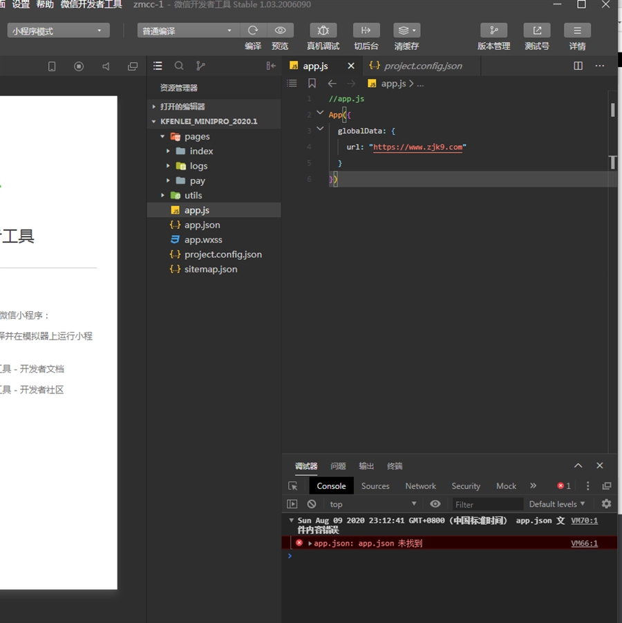 1,微信小程序點(diǎn)擊預(yù)覽出現(xiàn)圖一。