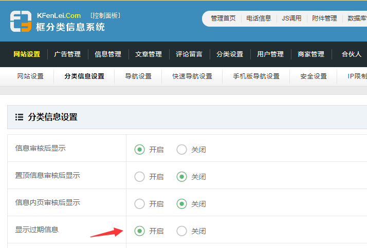在網(wǎng)站設(shè)置 - 分類信息設(shè)置中
